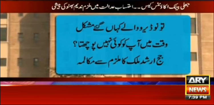 جج ارشد ملک سے ملزم سے سوال کیا کہ کیا گھر کا خرچ چلانے کے لئے اتنی رقم کی ضرورت ہوتے ہیں؟ جس پر ندیم بھٹو نے جواب دیا کہ بھٹو ہاؤس ایک بڑا گھر ہے، جہاں ملازمین کام کرتے ہیں اور ان پیسوں سے ہی اُن کی تنخواہ ادا کی جاتی ہے جبکہ میں بھی 20 ہزار ماہانہ تنخواہ پر کام کرتا ہوں۔