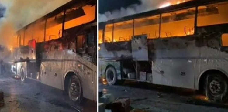 یاد رہے صوبہ سندھ کے ضلع جامشورو میں کراچی سے پنجاب جانے والے مسافر بس میں اچانک خوفناک آگ لگ گئی ، آگ کی شدت اتنی تیز تھی کہ اس نے فوری طور پر بس کو مکمل طور پر اپنی لپیٹ میں لے لیا تھا۔
