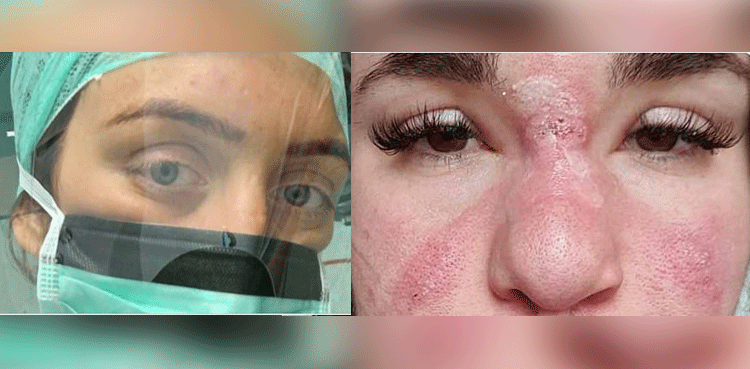 اسی طرح دیگر عملے نے بھی اپنی کہانیاں سماجی رابطوں کی ویب سائٹ پر شیئر کی، جس میں ایک نرس نے اپنا چہرہ خراب ہونے کی تصویر شیئر کی۔