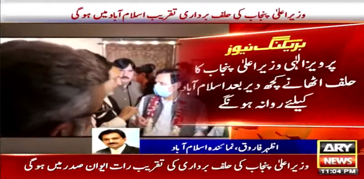 حلف برداری کی تقریب آج رات ہی ہوگی۔ پرویز الٰہی کچھ دیر میں خصوصی طیارے کے ذریعے اسلام آباد روانہ ہوں گے۔