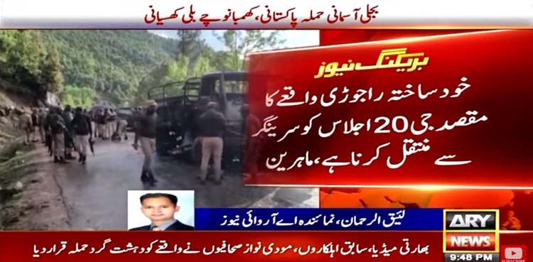 ادھر ماہرین کا کہناہے کہ بادی النظرمیں راجوڑی واقعہ بھی پلوامہ طرزکا خود ساختہ حملہ لگتاہے، خود ساختہ راجوڑی واقعےکامقصدجی ٹوئنٹی اجلاس کوسرینگرسےمنتقل کرناہے، واقعےکوجوازبناکر بھارت پاکستانی وزیرخارجہ کی شرکت سےمعذرت کرسکتاہے۔