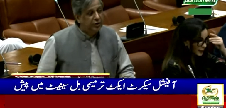 سینیٹ میں آفیشل سیکرٹ ایکٹ ترمیمی بل 2023 پیش کر دیا گیا ہے حکومت نے بل سے انٹیلیجنس ایجنسیوں کی بغیر وارنٹ گرفتاری کی شق کو واپس لے لیا گیا۔