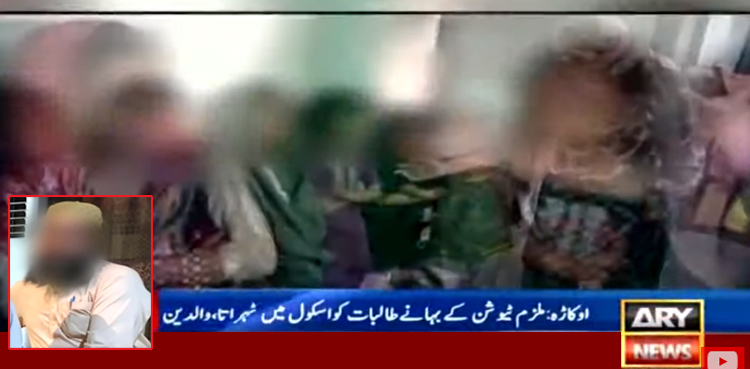 اے آر وائی نیوز کے مطابق اوکاڑہ کے نواحی گاؤں 20 فور ایل کے گورنمنٹ پرائمری اسکول کی طالبات کا کہنا ہے کہ ٹیچر نازیبا حرکات کرتے تھے، ننھی بچیوں نے ٹیچر کے غیر اخلاقی عمل سے والدین کو آگاہ کیا۔