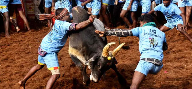بھارتی میڈیا رپورٹ کے مطابق ریاست تامل ناڈو کے ضلع مدورائی میں امسال بھی ’جلی کٹو‘ کے مقابلے کا انعقاد کیا گیا جس میں لوگ بھپرے ہوئے بیلوں کے کوہان پر لٹکے اور زیادہ سے زیادہ فاصلہ طے کرنے کی کوشش کی۔