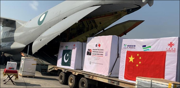 چین سے کورونا ویکسین کے پاکستان پہنچنے کا سلسلہ برقرار ہے آج مزید 10 لاکھ سائنوفارم ویکسین کےڈوزز پاکستان پہنچے ہیں۔