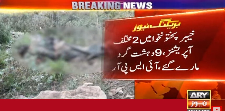 خیبر پختونخواہ میں سیکیورٹی فورسز کے دو مختلف آپریشنز کے دوران مطلوب دہشتگرد کمانڈروں سمیت 9 دہشت گرد مارے گئے۔