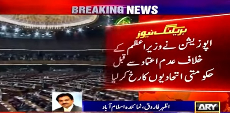 ذرائع کے مطابق چند روز قبل پیپلز پارٹی اور مسلم لیگ (ن) کی اعلیٰ قیادت کے درمیان ملاقات کے ثمرات نظر آنا شروع ہوگئے ہیں، اپوزیشن نے حکومت کے خلاف عدم اعتماد کی تحریک لانے کے لئے اپنی حکمت عملی کو تبدیل کرلیا ہے۔
