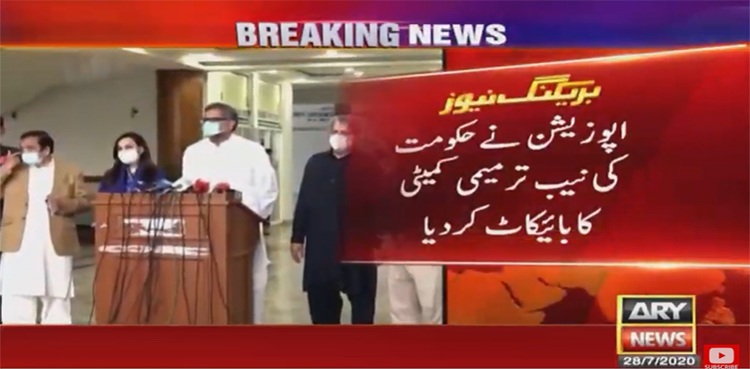 اسلام آباد: حکومت اور اپوزیشن کے درمیان نیب ترامیم پر ڈیڈ لاک برقرار ہے، حکومت نےاپوزیشن کی نیب ترامیم مسترد کر دیں جس پر اپوزیشن نے احتجاجاً ترمیمی کمیٹی کا بائیکاٹ کر دیا۔