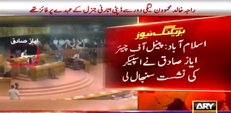سابق اسپیکر قومی اسمبلی ایاز صادق اسپیکر کی نشست پر اجلاس کی صدارت کررہے ہیں۔