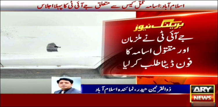 اے آر وائی نیوز کی رپورٹ کے مطابق اسلام آباد میں نوجوان اسامہ قتل کیس کی جے آئی ٹی کا پہلا اجلاس ہوا جس میں تمام ملزمان کے بیانات قلمبند کرلیے گئے۔