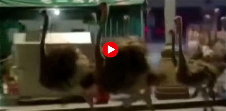 شتر مرغوں کی سڑکوں پر مٹر گشت کرنے کی ویڈیو سوشل میڈیا پر خوب وائرل ہورہی ہے۔