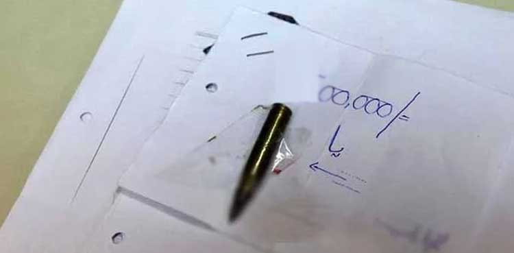 مدعی نے کہا ہے کہ دو نامعلوم افرادنے چوکیدار کو لفافہ دیا، لفافے میں 2گولیاں اور دھمکی آمیز خط بھی موجود تھا، خط میں میری کراچی اور اسلام آباد کی تفصیل موجود تھی۔