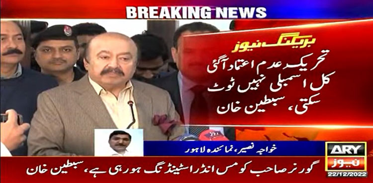 تفصیلات کے مطابق پنجاب اسمبلی کے باہر میڈیا سے گفتگو کرتے ہوئے سبطین خان نے کہا کہ گورنرصاحب نے ایک لیٹر لکھا جس میں انھوں نےاعتماد کےووٹ کی بات کی، اسمبلی کا موجودہ سیشن ابھی جاری ہے ، گورنر کو لکھ کر جواب دے دیا ہے، آئین کے تحت گورنرپہلے سے جاری اجلاس کےدرمیان نیا اجلاس نہیں بلاسکتے۔