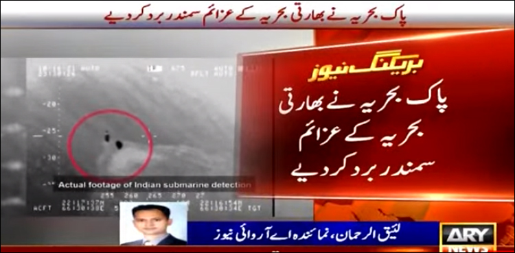 پاک بحریہ نے پیشہ ورانہ مہارت کا مظاہرہ کرتے ہوئے بھارتی سب میرین کی پاکستانی حدود میں داخلے کی کوشش ناکام بنا دی۔