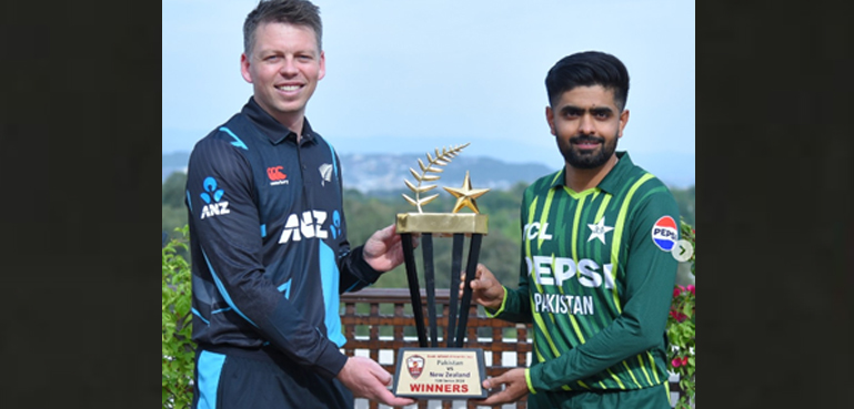 پاکستان اور نیوزی لینڈ کے درمیان پانچ ٹی 20 میچوں پر مشتمل سیریز کا آج سے آغاز ہو رہا ہے گزشتہ روز سیریز کی چمچاتی ٹرافی کی رونمائی کی گئی۔