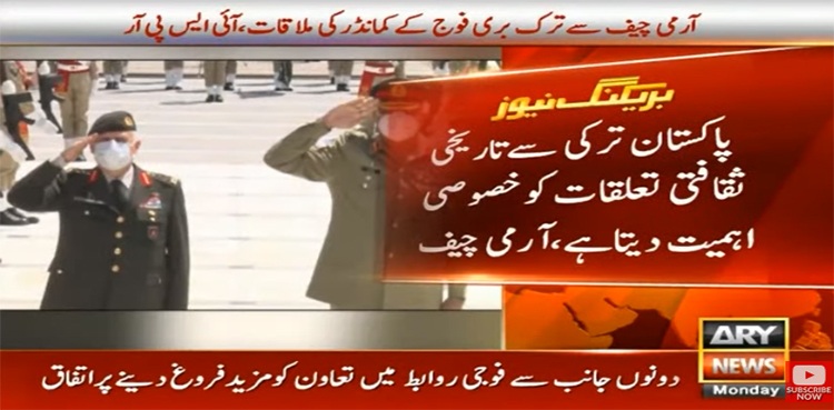 ترک کمانڈر نے خطے میں امن واستحکام کیلئے پاک فوج کی کامیابیوں کی تعریف کی اور انسداد ‏دہشت گردی میں پاک فوج کی کامیابیوں کو سراہا۔ جی ایچ کیو آمد پر ترک کمانڈر کو گارڈآف آنر ‏بھی پیش کیاگیا۔