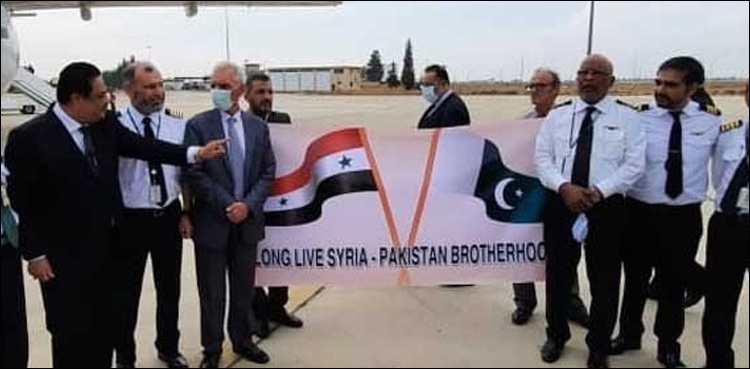 دمشق ایئرپورٹ پر پاکستانی سفارتی عملے نے جہاز کے ذریعے بھیجا جانے والا سامان شامی حکام کے حوالے کیا۔ اس موقع پر شام کے نائب وزیر خارجہ کا کہنا تھا کہ کرونا جیسی مشکل صورت حال میں مدد کرنے پر شامی عوام پاکستان کے شکر گزار ہیں۔
