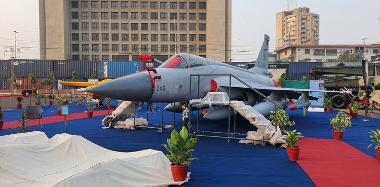 تقریب میں پاک فضائیہ کے پویلین میں دکھائے گئے طیاروں میں غیر ملکی مندوبین اور عسکری حکام نے گہری دلچسپی کا اظہار کیا۔