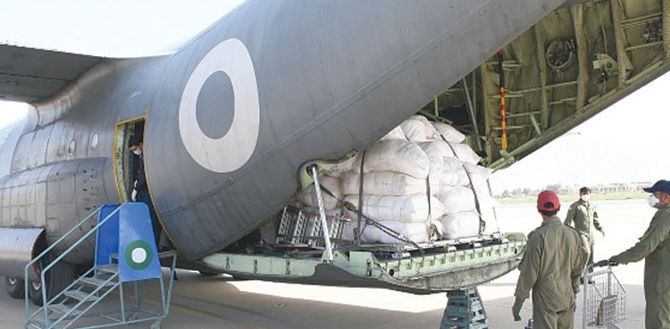 کراچی: شہرقائد میں ہونے والی ریکارڈ بارشوں کے بعد متاثرین کی مدد کے لیے پاک فضائیہ بھی پیش پیش ہے، شہریوں کو امدادی سامان اور راشن فراہم کیے جارہے ہیں۔