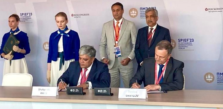 روس میں پاکستان کے سفیر شفقت علی خان نے پاکستان کسٹمز کی جانب سے مفاہمت کی دستاویز پر دستخط کئے ہیں۔ سینٹ پیٹرزبرگ بین الاقوامی اقتصادی فورم کے موقع پر دستخط کی تقریب میں سیکرٹری تجارت محمد صالح فاروقی بھی موجود تھے