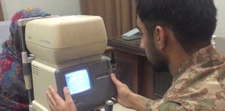 پاک فوج نے بتایا کہ مریضوں کا لیزر کےذریعے آنکھوں کا مفت علاج کیاگیا، کیمپس میں500سے زائد مفت سرجیکل لیزرآپریشن کیے گئے، 5ہزار کے قریب مریضوں میں عینک تقسیم کی گئیں۔