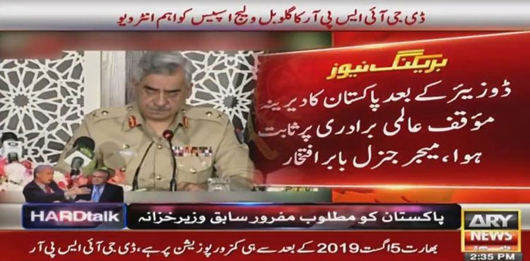 تفصیلات کے مطابق ڈی جی آئی ایس پی آر میجر جنرل بابر افتخار نے گلوبل ویلیج اسپیس کو اہم انٹرویو دیا۔ اس موقع پر انہوں نے بھارتی دہشت گردی کے خلاف ڈوزیئر کے اہم نکات اجاگر کیے۔ ایل او سی صورت حال، سی پیک اور ففتھ جنریشن وار فیئر سمیت دیگر سوالات پر میجر جنرل بابر افتخار نے تفصیلی گفتگو کی۔ انٹرویو میں سوال پوچھا گیا کہ آپ اور وزیرخارجہ کی ڈوزیئر پر پریس کانفرنس کا دنیا نے کیا ردعمل دیا؟۔
