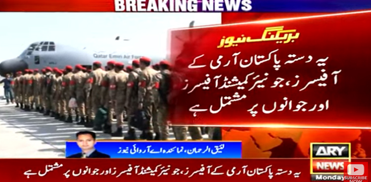 تفصیلات کے مطابق پاکستان آرمی کا دستہ فیفا ورلڈ کپ کی سیکیورٹی سنبھالنے قطر روانہ ہوگیا ، یہ دستہ پاکستان آرمی کے آفیسرز، جونیئر کمیشنڈ آفیسرز اور جوانوں پر مشتمل ہے۔