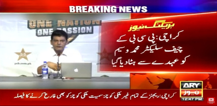 پی سی بی کے چیف سلیکٹر محمد وسیم عہدے سے فارغ
