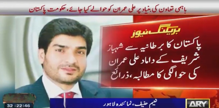 اسلام آباد: حکومت پاکستان نے برطانیہ سے اپوزیشن لیڈر شہباز شریف کے داماد علی عمران کی حوالگی کا مطالبہ کر دیا۔
