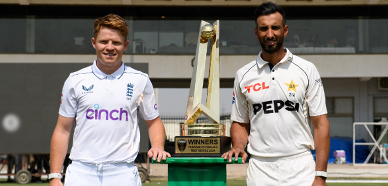 تین ٹیسٹ میچوں پر مشتمل سیریز کی ٹرافی کی رونمائی کی تقریب ملتان کرکٹ اسٹیڈیم میں ہوئی۔ پاکستانی کپتان شان مسعود اور انگلش کپتان اولی پوپ نے ٹرافی کی رونمائی کی۔