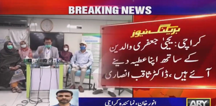 ڈاکٹرثاقب انصاری کا کہنا تھا کہ یحییٰ جعفری والدین کے ساتھ اپنا عطیہ دینےآئےہیں ، ہم یحیی جعفری اور ان کے والدین کی ہمت کو داد دیتے ہیں۔