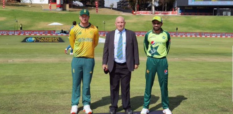 تفصیلات کے مطابق ٹی 20 سیریز جیتنے کا عزم لئے گرین شرٹس سنچورین کے میدان میں اتری، قومی ٹیم کے کپتان بابر اعظم نے پروٹیز کے خلاف ٹی ٹوئنٹی سیریز کے آخری میچ میں ٹاس جیتا اور پہلے فیلڈنگ کا فیصلہ کیا ہے۔