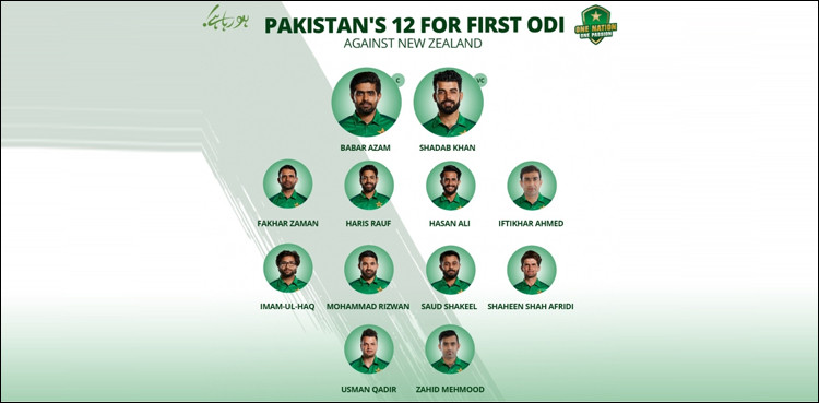 کیویز کے خلاف ون ڈے سیریز میں ٹیم کی کپتانی کے فرائض بابر اعظم جب کہ نائب کپتان کی ذمہ داری شاداب خان انجام دیں گے۔