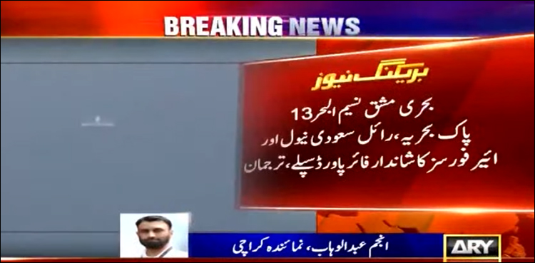 واضح رہے کہ دو طرفہ بحری مشق نسیم البحر 13 کا آغاز ہوگیا، مشق نسیم البحر پاکستانی اور سعودی بحری افواج میں باقاعدگی سے منعقد کی جاتی ہے۔