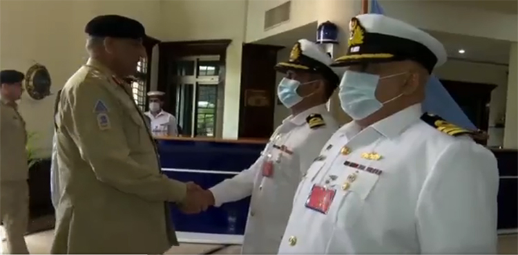 آرمی چیف کی آمد پر ریئر ایڈمرل شفاعت علی خان نےاستقبال کیا جس کے بعد جنرل باجوہ نے یادگار شہدا پر حاضری دی اور پھول رکھے۔