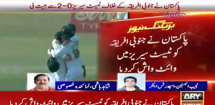 راولپنڈی : پا کستان نےجنوبی افریقہ کوٹیسٹ سیریزمیں وائٹ واش کردیا، راولپنڈی ٹیسٹ میں پاکستان نے جنوبی افریقہ کو 95رنز سے شکست دی۔