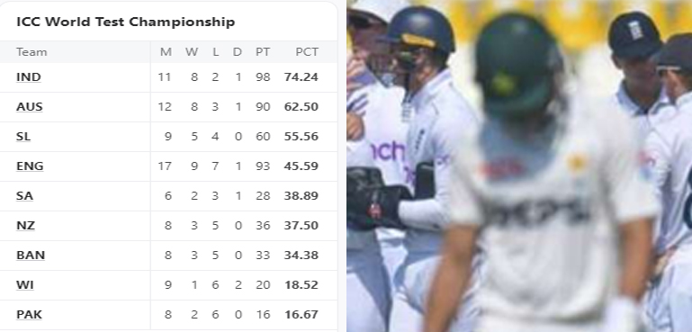 ملتان ٹیسٹ میچ میں انگلینڈ کے ہاتھوں عبرت ناک شکست کا انجام قومی ٹیم کی آئی سی سی ورلڈ ٹیسٹ چیمپئن شپ رینکنگ میں مزید تنزلی کی صورت سامنے آ گیا۔