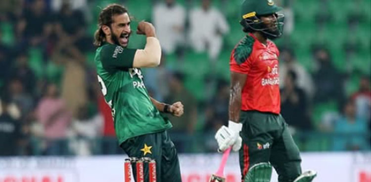 قذافی اسٹیڈیم میں کھیلے گئے پہلے ٹی 20 میچ بنگلادیش کی ٹیم پاکستان کی جانب سے دیے گئے 202 رنز کے تعاقب میں 19.2 اوورز میں 164 رنز پر ڈھیر ہوگئی۔