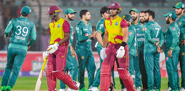 نیشنل اسٹیڈیم کراچی میں کھیلے گئے سیریز کے دوسرے میچ میں پاکستان کے 173 رنز کے تعاقب میں ویسٹ انڈیز کی پوری ٹیم 163 پر ڈھیر ہو گئی۔