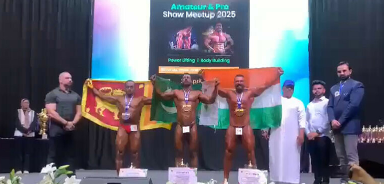 اے آر وائی نیوز کے مطابق دبئی میں ہونے والی ورلڈ امیچر پرو چیمپئن شپ کے پاور لفٹنگ اینڈ باڈی بلڈنگ مقابلے میں پاکستانی تن ساز نے بھارتی حریف کو چاروں شانے چت کر دیا۔