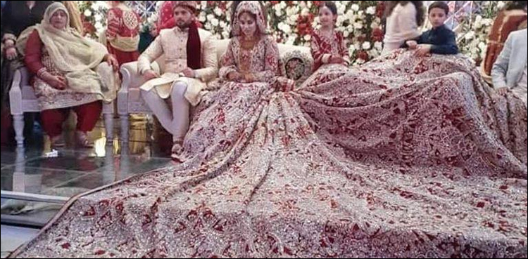 ایسے ہی چرچے گزشتہ روز سے پاکستانی دلہن کے عروسی لباس کے ہورہے ہیں جس نے اپنی شادی میں 100 کلو وزنی جوڑا زیب تن کیا تھا۔