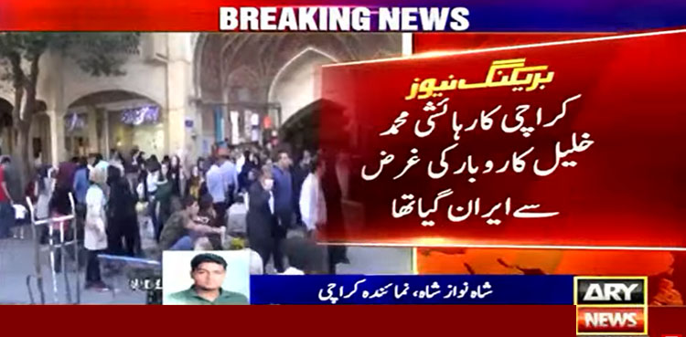 اے آر وائی نیوز کے مطابق کراچی کے علاقے ملیر کے رہائشی 60 سالہ محمد خلیل کاروبار کی غرض سے ایران گئے تھے، بیٹے عدیل کا کہنا ہے کہ والد کی رہائی کے لیے اغوا کاروں کی جانب سے تین ہزار ڈالر طلب کیے جارہے ہیں۔