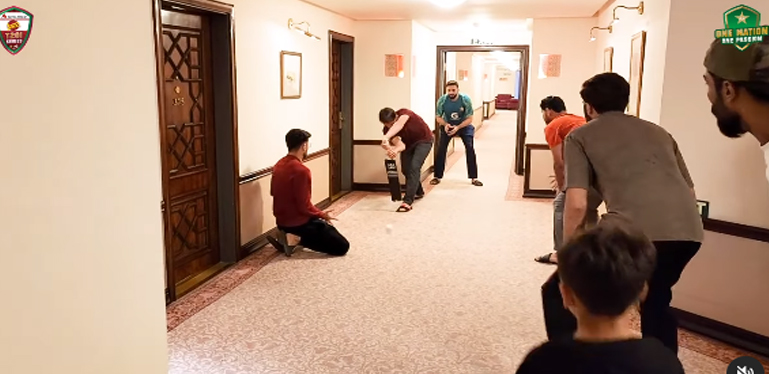 پاکستان کرکٹ بورڈ نے انسٹا گرام پر اپنے اکاؤنٹ سے ایک ویڈیو شیئر کی ہے جس میں محمد عامر، عماد وسیم، شاہین آفریدی، زمان خان اور ابرار احمد نے ہوٹل کے کوریڈور میں میچ کھیلتے دکھائی دے رہے ہیں۔