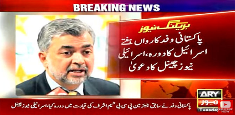 اسرائیلی نیوز چینل نے خبر شائع کی ہے کہ پاکستانی وفد نے رواں ہفتے اسرائیل کا دورہ کیا جس کی قیادت سابق وزیر نسیم اشرف نے کی۔
