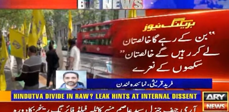 اے آر وائی نیوز کے مطابق پہلگام حملے کے بعد بھارتی جارحیت کےخلاف بھارتی ہائی کمیشن لندن کے باہر پاکستانیوں اور سکھوں نے احتجاج کیا، مظاہرے میں سکھ برادری نے آزاد خالصتان کے پرچم اٹھائے ہوئے تھے جبکہ مظاہرے میں سکھ خواتین بھی شریک تھیں۔
