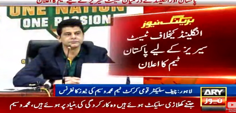 چیف سلیکٹر محمد وسیم کا کہنا تھا کہ انگلینڈ کے خلاف سیریز کے لیے تمام کھلاڑی کارکردگی کی بنیاد پر منتخب کیے گئے ہیں۔