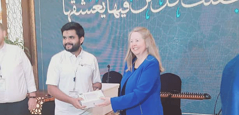 ترجمان کے مطابق ایچ ای جے ریسرچ انسٹی ٹیوٹ کے اس ہونہار طالب علم نے 250 پوسٹرز پریزینٹیشن کے درمیان تیسری پوزیشن حاصل کی ہے جبکہ اس عالمی کانفرنس میں پوری دنیا سے 800 افراد شرکت کر رہے تھے۔ ترجمان کے مطابق امریکن کیمیکل سوسائٹی کی صدر اینجیلا کے ولسن نے کامیاب طالب علموں کو انعامات پیش کیے جبکہ اس موقع پر 2016 کے نوبل انعام یافتہ سائنسدان پروفیسر فریزر اسٹوڈرٹ بھی موجود تھے۔