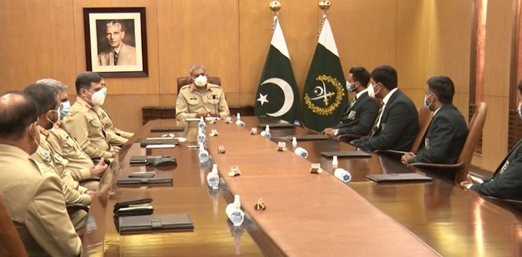 آرمی چیف نے ٹوکیو اولمپکس میں حصہ لینے والے کھلاڑیوں کو پاک فوج کی طرف سے مکمل تعاون فراہم کرنے کی یقین دہانی کرائی ، جس پر کھلاڑیوں نےآرمی چیف کی جانب سے حوصلہ افزائی پرشکریہ ادا کیا۔