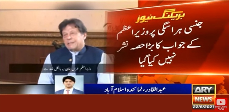 وزیراعظم عمران خان کے امریکی نیوز چینل کو دیے گئے انٹرویو میں جنسی ہراسگی سےمتعلق ویڈیو کا ایک بڑا حصہ نشر نہیں کیا گیا۔