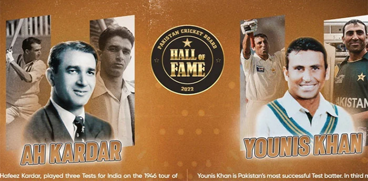 ٹیسٹ کرکٹ کی تاریخ میں پاکستان کے پہلے کپتان عبدالحفیظ کاردار اور پاکستان کے سب سے کامیاب ٹیسٹ بیٹر یونس خان کو پی سی بی ہال آف فیم شامل کرلیا گیا ہے۔ اس سے قبل فضل محمود، عبدالقادر، حنیف محمود ظہیر عباس جاوید میانداد، وسیم اکرم، وقار یونس بھی پی سی بی ہال آف فیم کا حصہ ہیں۔